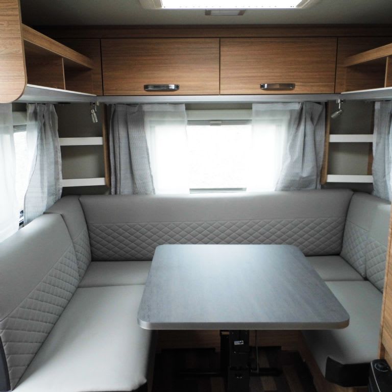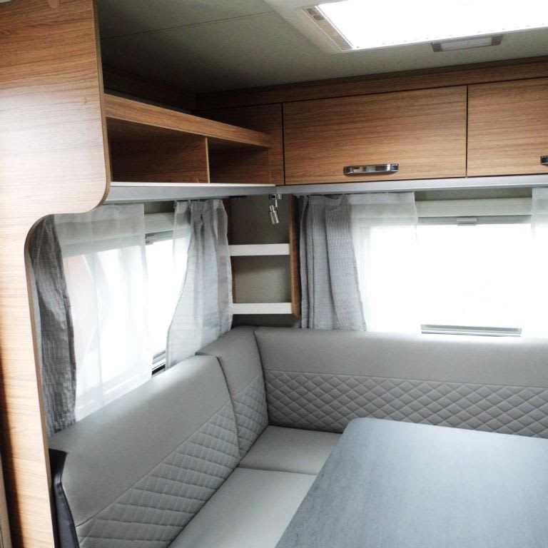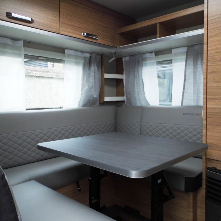 Large wraparound seating area to the rear will also convert to a double bed. Ambient lighing, overhead locker and under seat storage